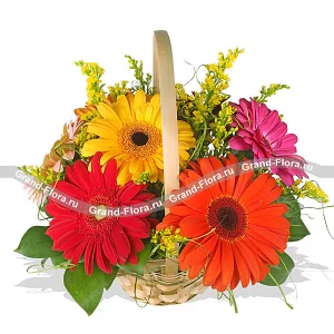 Энергия лета - букет из разноцветных гербер и хризантемы