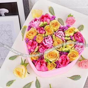 Гамма чувств - композиция в форме сердца с тюльпанами