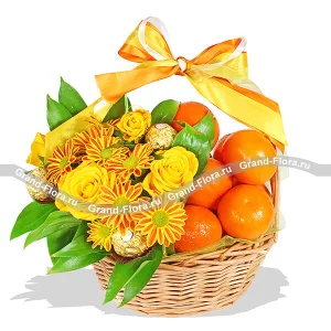 Подарочная корзина + жёлтые розы - Жизнь в шоколаде