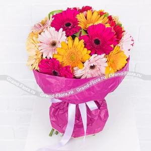 Заказ делала для своей мамы к её к дню рождения. Она очень не любит подарочные упаковки и на всех букетах всегда сразу же снимает их. Поэтому искала для неё букет со свежими цветами просто перевящанными ленточкой. Девушка оператор посоветовала мне рассмотреть этот вариант с розами. Букет собрали действительно отличный! Розы невысокие, но очень свежие. Я выбрала вариант из 25 штук. Их просто красиво перевязали лентой и прикрепили к ленте открытку. То что надо в моём случае! Доставкой очень довольна и я и мама. Спасибо.